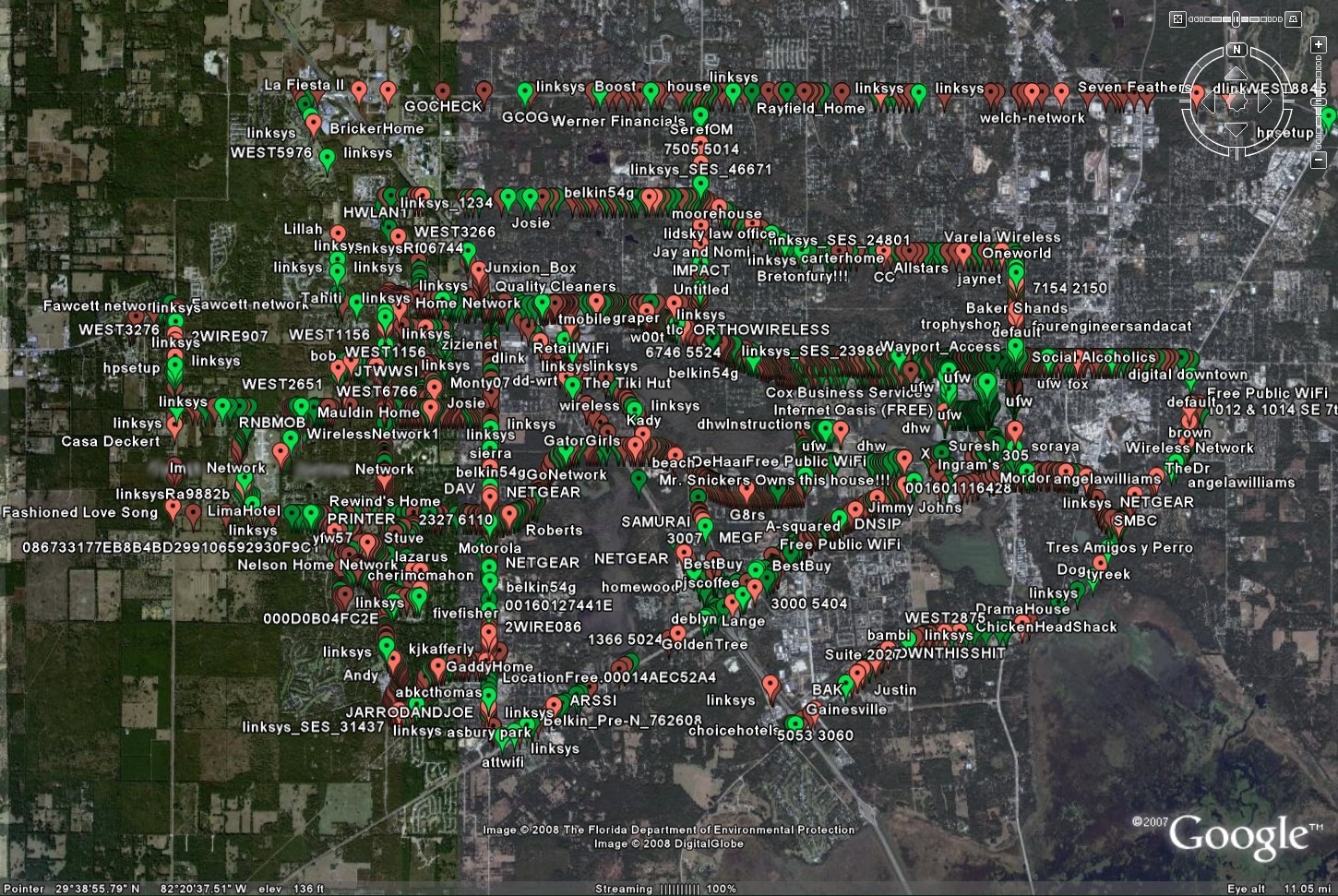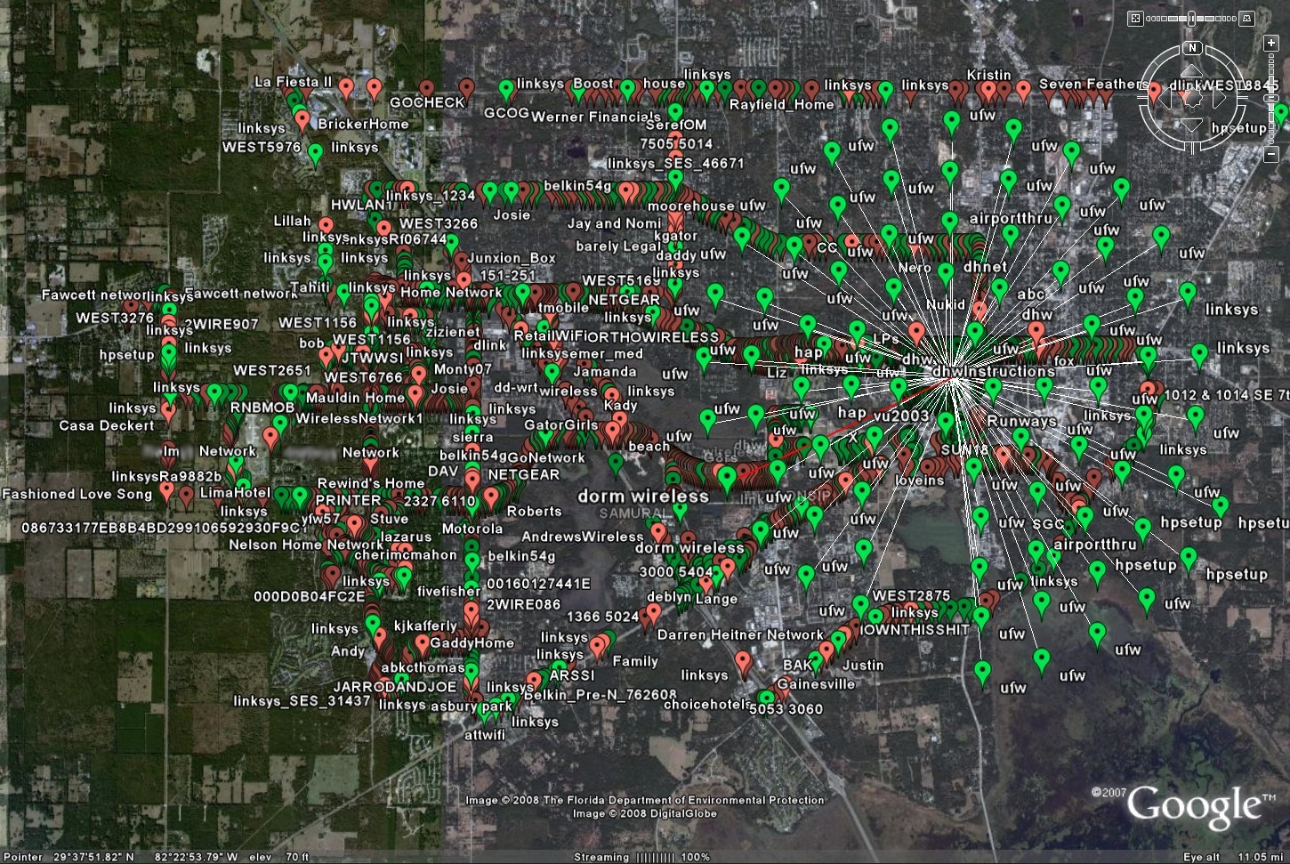 - Snap shots of Google Earth files obtained using Wififofum and other wireless signal