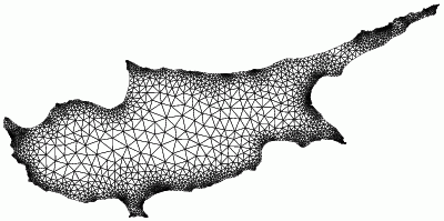 Smallest angle: 34 degrees, Largest angle: 111.87 degrees Minimum area = 0.05, Shortest edge = 0.3 |