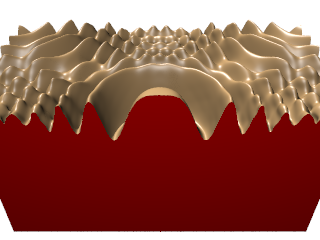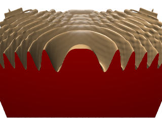 | ρ(x,y,z)= | 1-sin(πz/2)+α(1+ρr((x2+y2)½)) | 2(1+α) |
