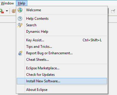 In the Eclipse menu bar, select [Help]-[Install New Software...]
