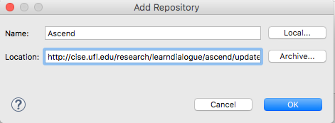 Enter "Ascend" in the Name field and "http://cise.ufl.edu/research/learndialogue/ascend/update" in the Location field. Click OK.