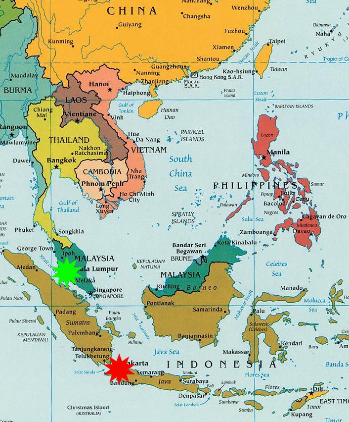 (July 22,1975) (green). 1975 - 1980: My dad got transferred to Jakarta, Indonesia (red) and that's where we lived for five years. I don't remember much of it, though... Unfortunately, I've lost most of my Cantonese... well I know enough to watch a bad kung fu movie, but that's about it. I'm toying w/ the idea of taking Mandarin classes here at UF in the coming years. |