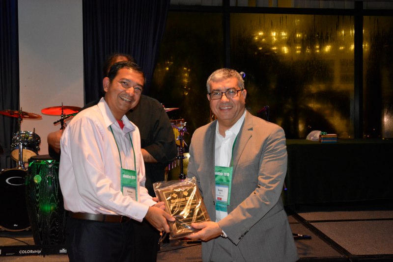 Dr. Helal receives the ACM Outstanding Service Award in appreciation for contributions to ACM as Chair of the 19th Annual International Conference on Mobile Computing and Networking (MobiCom), Sept 30-Oct 4, 2013, that was held in Miami, Florida. Pictured with Prof. Suman Banerjee, ACM SIGMOBILE Chair.