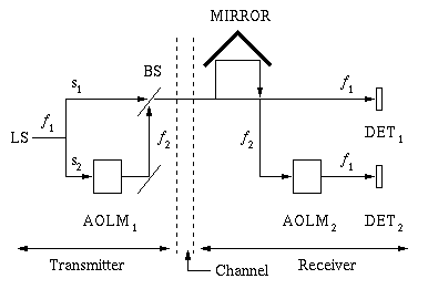 AOLM = Acousto-Optic Light Modulator, DET = Detector, and BS =