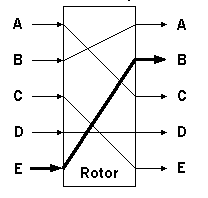 Assumption. Let the structure of a rotor over an alphabet F = {A,B,C,D,E} be as shown in Figure 3, below. The rotor transform Tr: F -> F can be expressed in terms of the graph
