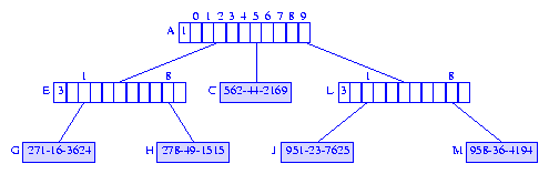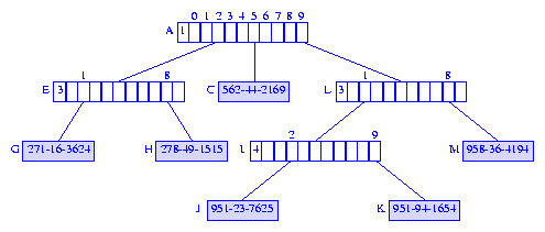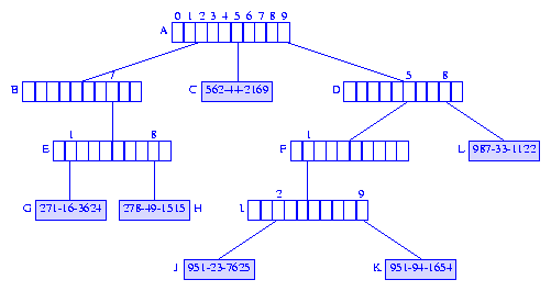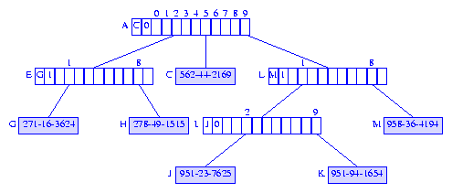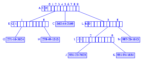 Figure 17 Compressed trie following the insertion of 987-26-1615 into the compressed trie of Figure 16
