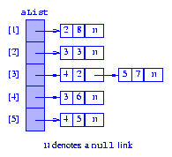 The linked adjacency-lists for Figure 16.13(c) are